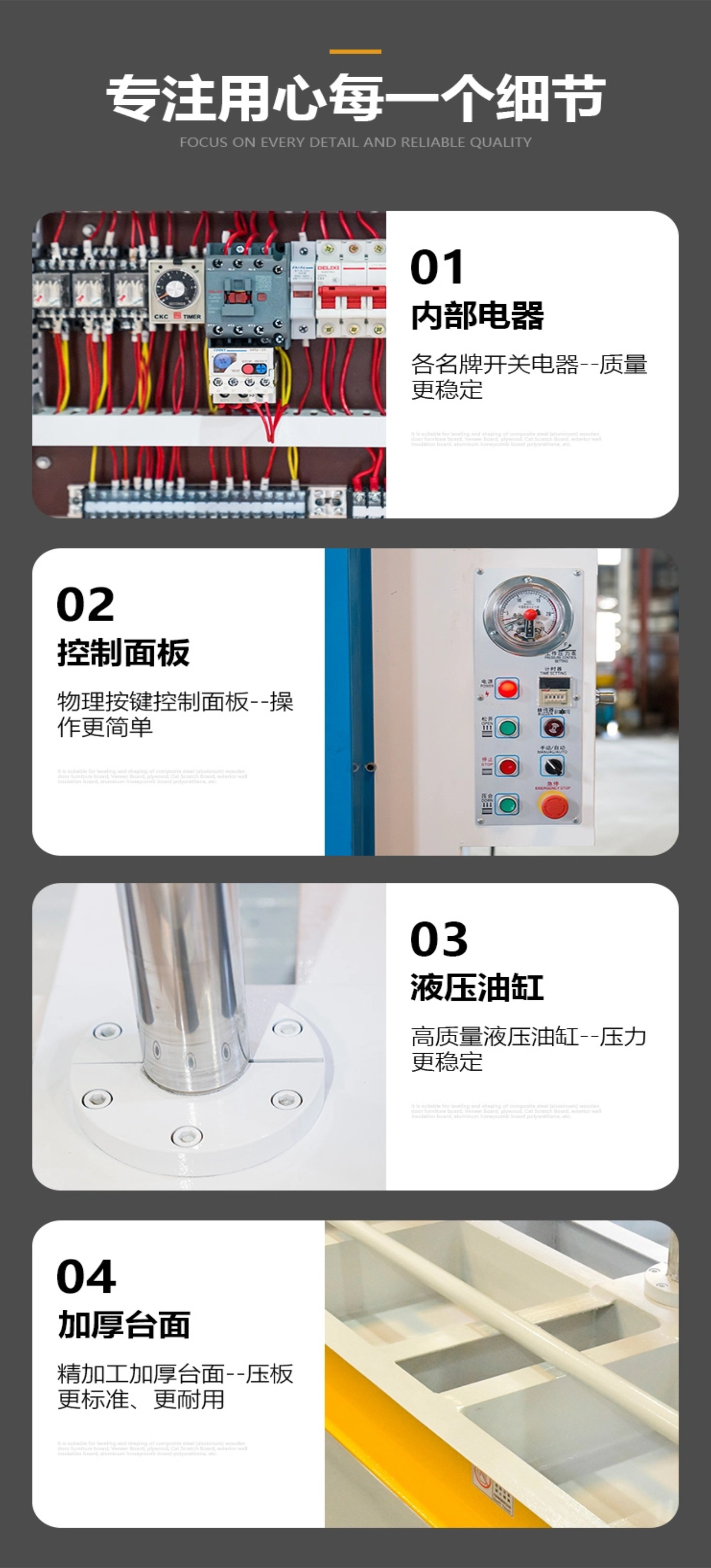 冷压机是一种通过液压系统提供高压的冷态压合设备,广泛应用于家具、装饰、包装等行业,可对板材、门窗、保温材料等进行定型压合。它具有压力均匀、精度高、操作便捷、耐用性强的特点,是提升工件平整度与结构强度的关键设备。